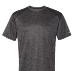 Badger Adult Tonal Blend Tee. 100% Sublimated polyester moisture management/antimicrobial performance fabric. Badger sport shoulder for maximum movement with coverstitch. Self-fabric collar - Double-needle hem. Badger heat seal logo on left sleeve