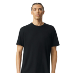 American Apparel Adult 4.6 Ounce CVC Fine Jersey Short Sleeve T-Shirt. 60% Combed Ring Spun Cotton, 40% recycled polyester. 4.6 ounces. Non-topstitched, classic width, rib collar. Taped neck and shoulders for comfort and durability. Relaxed fit, side seamed body. Recycled tear away label.